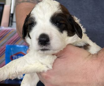 Beth is a female Saint Berdoodle. Carefully selected as a great representative of her breed, Jenna decided to make her part of their program. Jenna has passed Good Dog’s screening process, which involved a review of their breeding practices, environment, and the mental and physical health of their dogs.