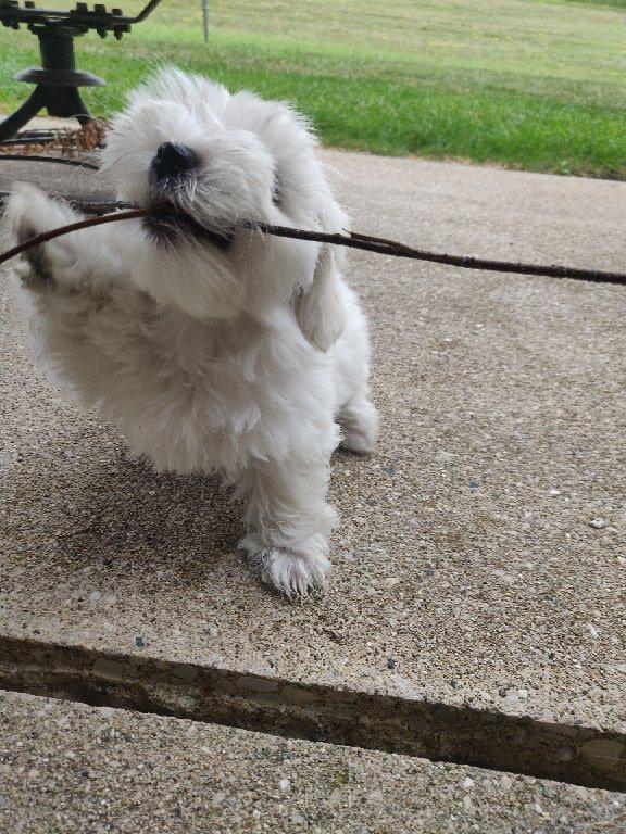 Linda from Darryl’s Coton de Tulear did an excellent job of preparing Pizzaro for the world. Her puppies are well cared for with complete health records and raised in a home environment with personal contact. Introductory puppy and paper training was already completed which made for a smooth transition when Contessa (formerly Pizzaro) came home with us. The intelligence of the Coton breed shines through as Contessa quickly mastered our puppy door, water and eating routines and pee pads with few exceptions.