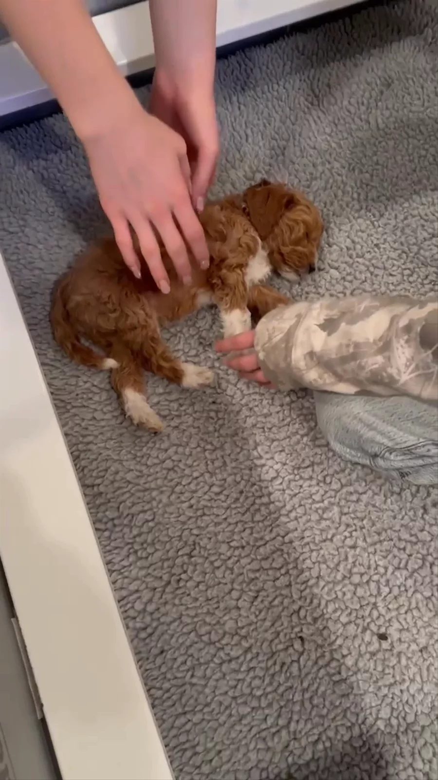 Kora is so sweet and gentle. She loves sitting on your lap on car rides and just hanging out. She has a wavy coat that is soft like Minky. GENETICS (-) CDDY, (-)IVDD, 7/10 Red Intensity, SS, FF, CC non shedding, CT Coat texture