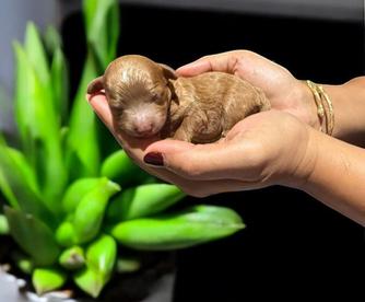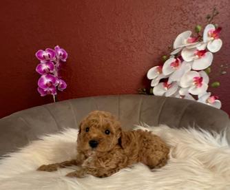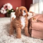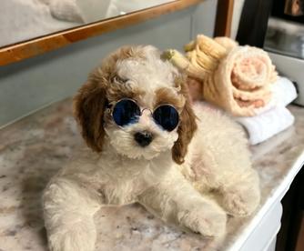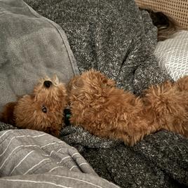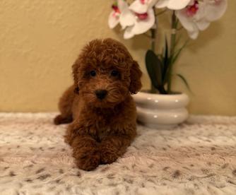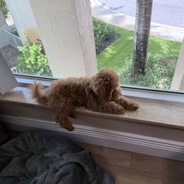 A couple of months ago, after losing our last poodle, we began the search for a new companion for our family, and through gooddog.com we found DAVE POODLES, who had excellent ratings and references. We visited their Instagram and there we found LEÓN, a beautiful red toy poodle who joined our family and has done nothing but bring back the joy we shared for over 16 years with our previous furry friends. LEÓN is a gorgeous, affectionate, playful, and mischievous male, just like any poodle puppy. He is in excellent health and continues to grow strong and full of life every day. Thank you, DAVE, for helping us find LEÓN. Without a doubt, if we ever want to find a companion for LEÓN, we will reach out to DAVE POODLES again.