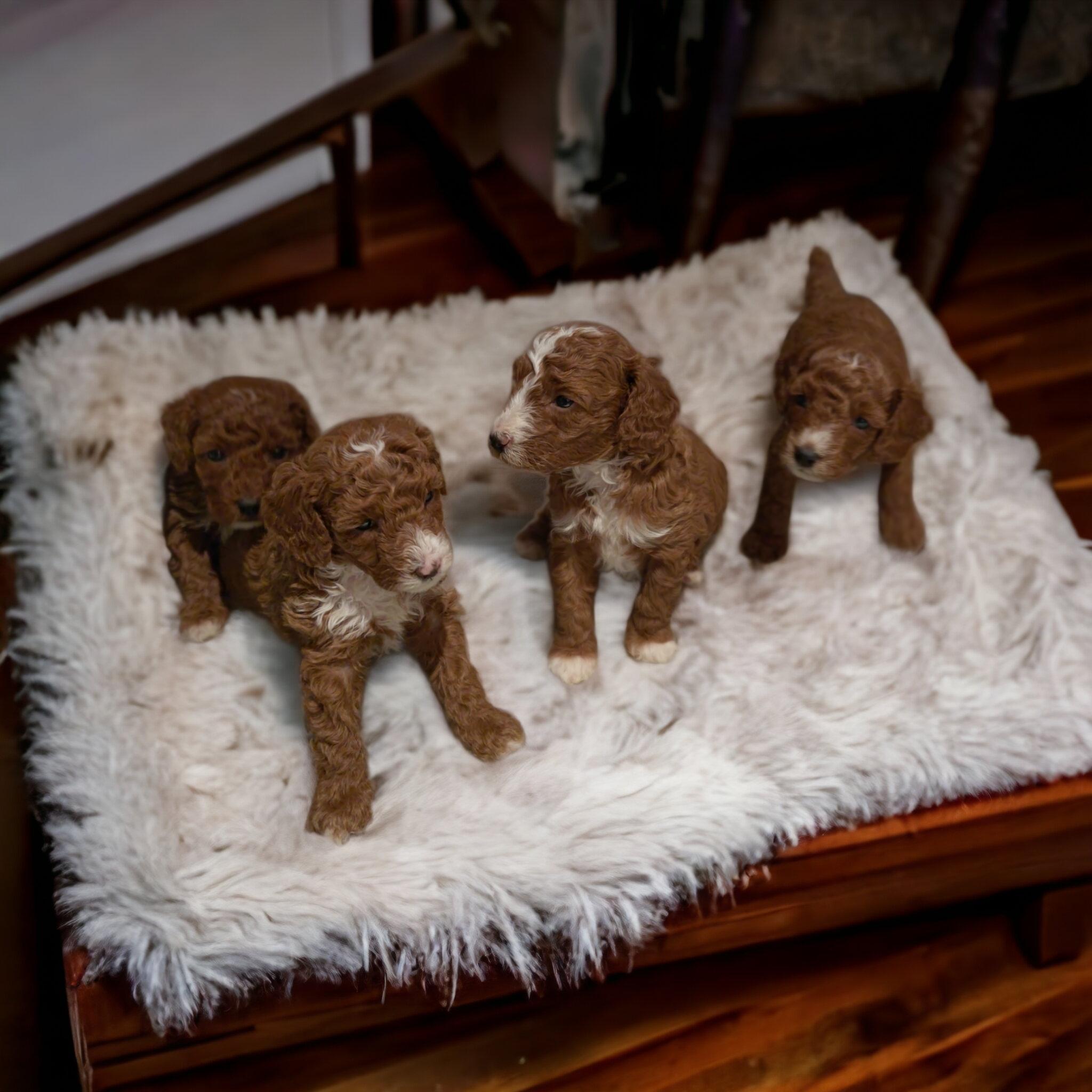 We’re working on early socialization and potty training, and each puppy will go home with up to date vaccinations, vet check, and a starter kit.