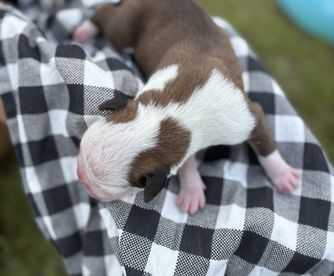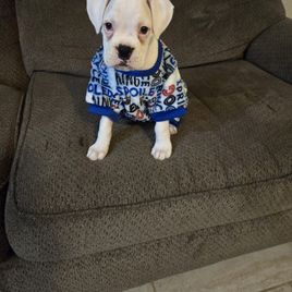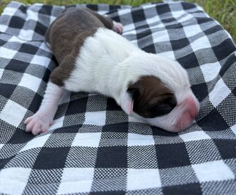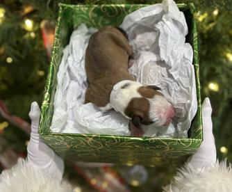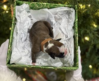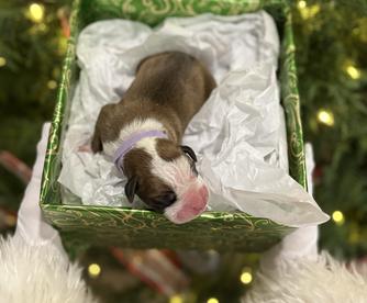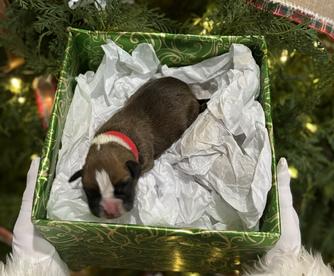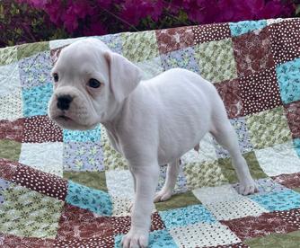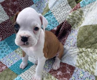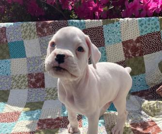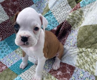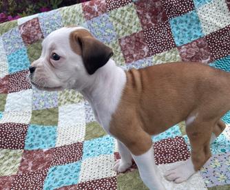 Our puppies include fawn and white. Colors will vary depending on the parent dogs.