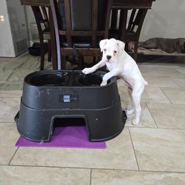 Lucie is a female Boxer about 3 years old. Carefully selected as a great representative of her breed, David decided to make her part of their program. David has passed Good Dog’s screening process, which involved a review of their breeding practices, environment, and the mental and physical health of their dogs.