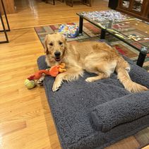 We got our Buddy over a week ago from David, and we could not be happier! David clearly loves and cares for the puppies he breeds; they are part of his family, and he does not rush to give them away, but rather ensures they end up with the right families (e.g., where at least one person stays home, there is a backyard, etc.). We are grateful for that, because we were able to get a year-old pup, as we did not want to deal with really young puppies. Buddy is very affectionate and got quickly accustomed to us and our place. He came to us with good basic training - he is crate and potty trained, he does not beg for food, he does not go upstairs, etc. He was quick to learn a couple of new obedience commands (come and sit). He loves fetching a ball and plays with his toys. We love our new member of the family!
