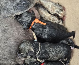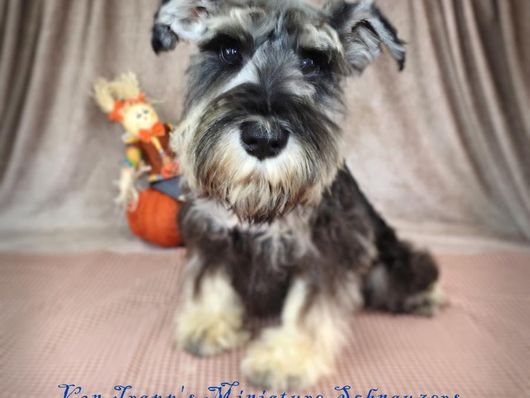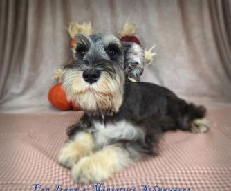 Our puppies include black and silver, salt and pepper, and black. Colors will vary depending on the parent dogs.