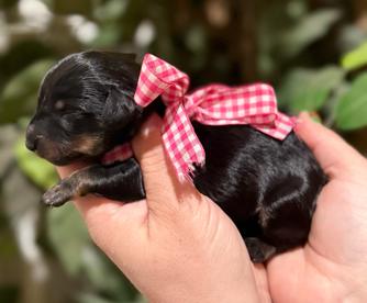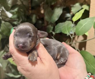 Jessica was wonderful. First she raised an amazing doxie. Second she delivered our dog as promised. Third his health is perfect. He’s the most precious dog and he already runs the house.