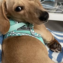 Winston is a male Dachshund. Carefully selected as a great representative of his breed, Jessica decided to make him part of their program. Jessica has passed Good Dog’s screening process, which involved a review of their breeding practices, environment, and the mental and physical health of their dogs.