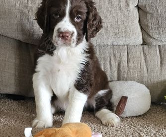 Dusty is a male English Springer Spaniel. Carefully selected as a great representative of his breed, Roxann decided to make him part of their program. Roxann has passed Good Dog’s screening process, which involved a review of their breeding practices, environment, and the mental and physical health of their dogs.