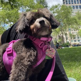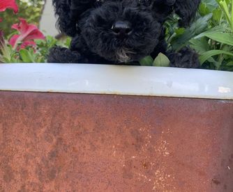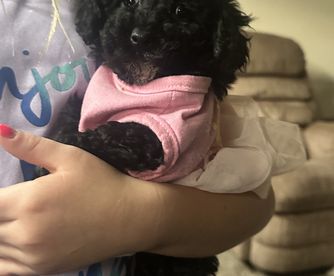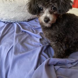 Bella is so smart she loves being pet and loved on but also loves running around in circles outside. She loves to be held and loves her bed and poodle girlfriends.