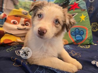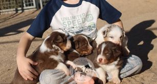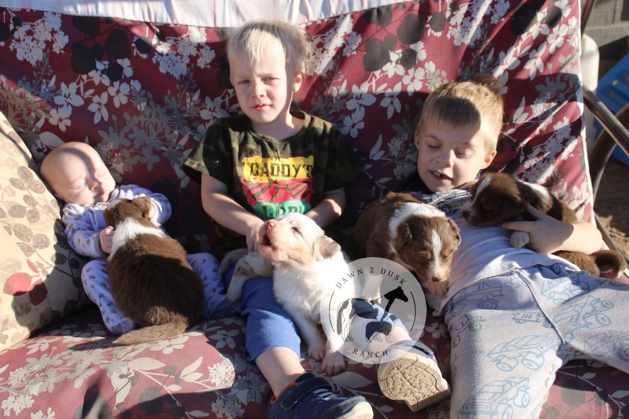 Our puppies include black & white, red merle, blue merle, black tri-color, and red tri-color. Colors will vary depending on the parent dogs.
