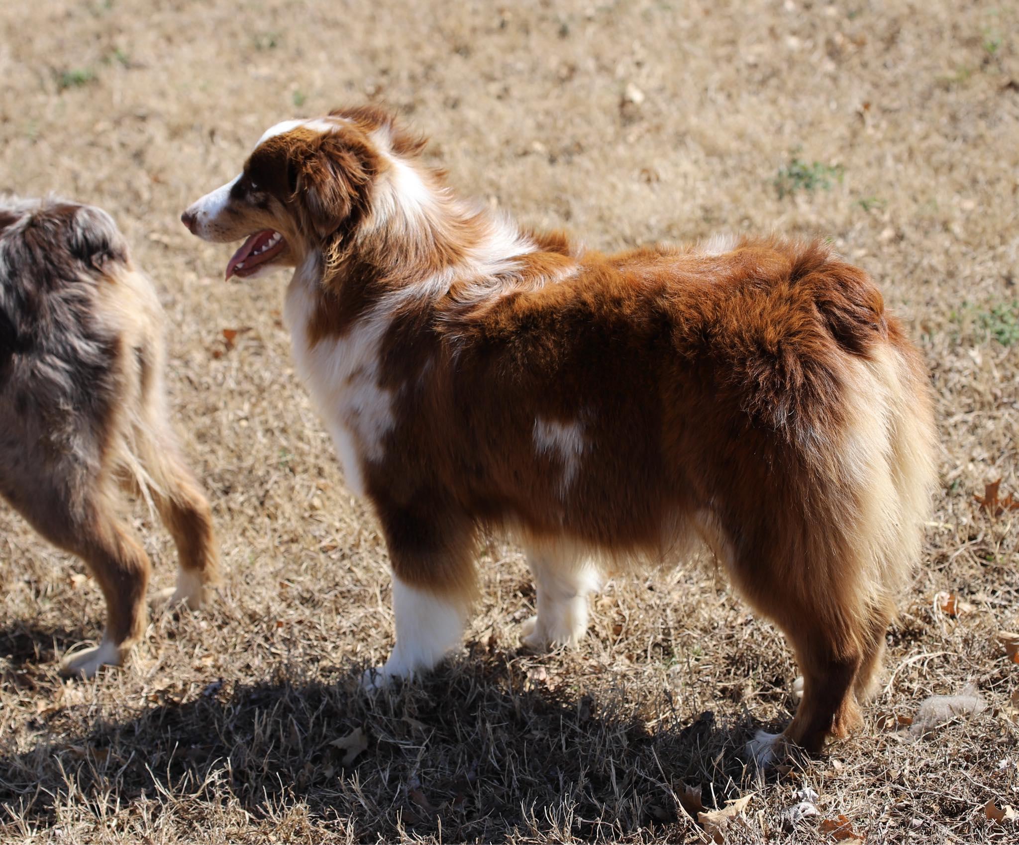 I grew up helping my mom breed cocker spaniels. My piano teacher gave me a deaf double merle Aussie, who eventually had to be re-homed due to her digging out to chase the neighbor's horse with no ability to recall her. My goal is to protect the breed to reduce chances of similar occasions happening, to and provide families with healthy, loving companions.