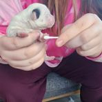 Rosie is tiny but mighty, she is only 6lbs but keeps up with the big dogs smd doesn't let her small size stop her!