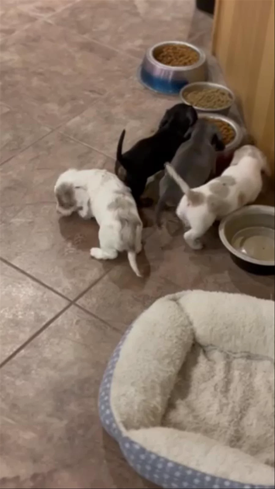 Onyx’s puppies are doing great they are six weeks old so two more weeks till they get to go to their new families.❤️❤️❤️