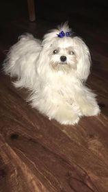 Sophie is a very gentle natured dog and laid-back. She loves to snuggle and she's also very playful. Her father is a show dog and comes from a very good line of Maltese dogs.
