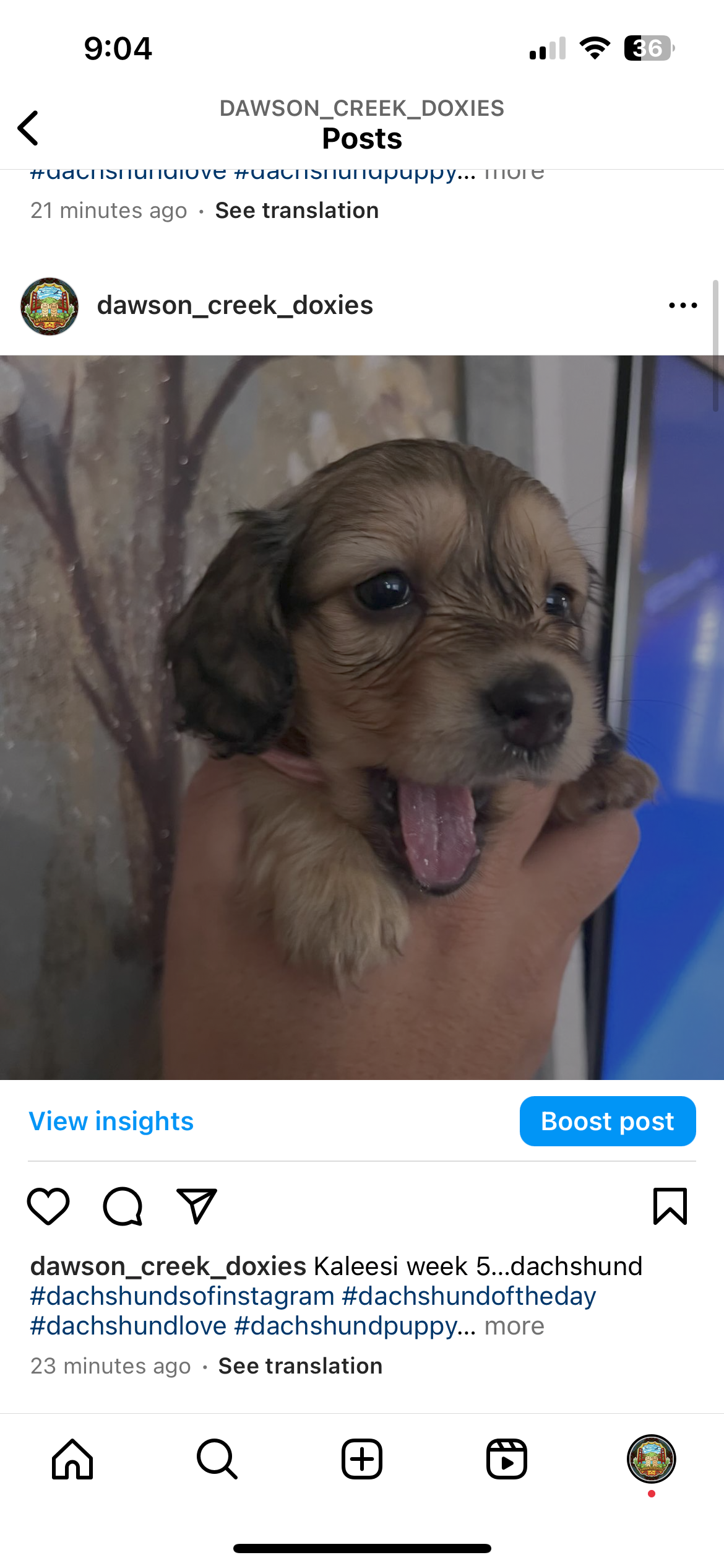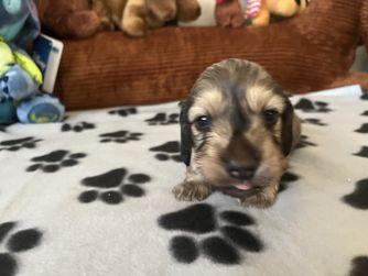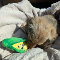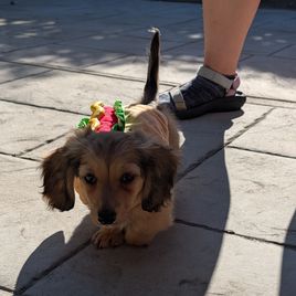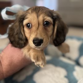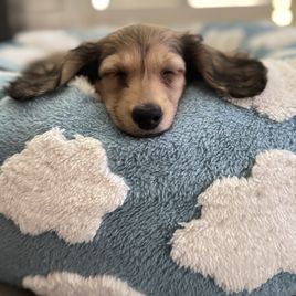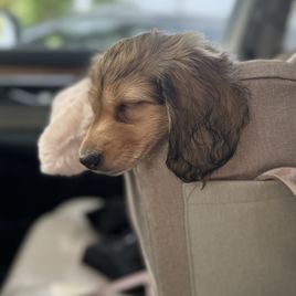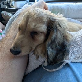 Philip was the best breeder I've ever worked with throughout the whole process. He was quick to respond to messages, wanted to know if my wife and I were experienced with Dachshunds, if we were planning to crate train, I appreciate that he vetted us before trusting us to have one of his pups. Philip traveled two hours round-trip to let us meet Noli so that we could make our decision. When we met Noli's parents it was clear that all of his dogs are loved and full-fledged members of the family. They were extremely affectionate and people oriented. Noli came home with a great little housewarming basket with his essentials and some things just to make the transition smoother. All-in-all, our little nugget is adjusting well. He was immediately attached to me like velcro, and he's a smart and sweet little pup. 12 out of 10, great dogs can be found at Dawson Creek Doxies.