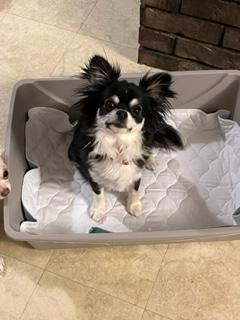 Evie is a female Chihuahua. Carefully selected as a great representative of her breed, Karen decided to make her part of their program. Karen has passed Good Dog’s screening process, which involved a review of their breeding practices, environment, and the mental and physical health of their dogs.