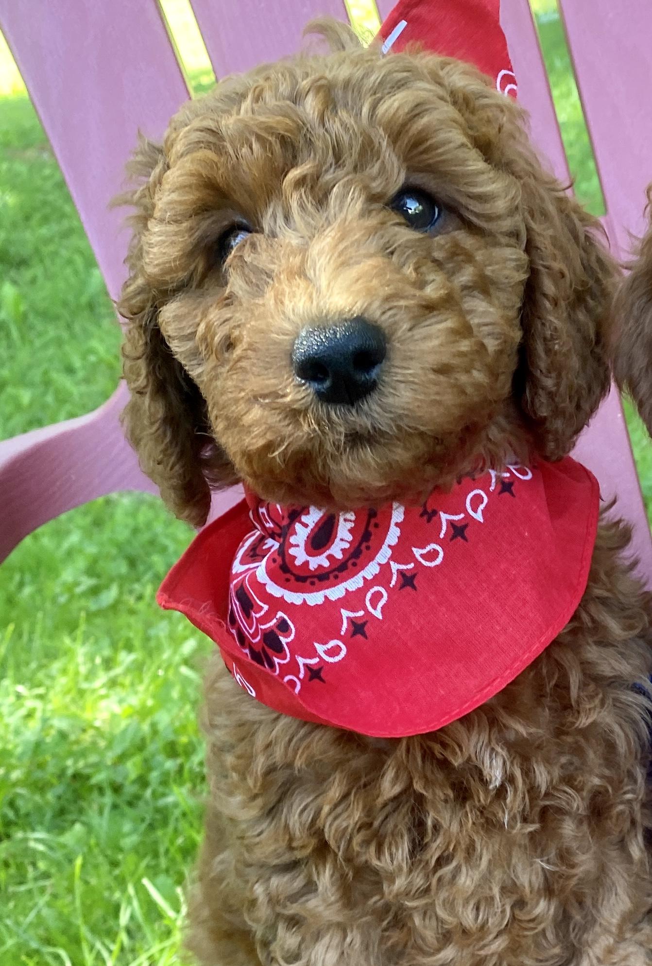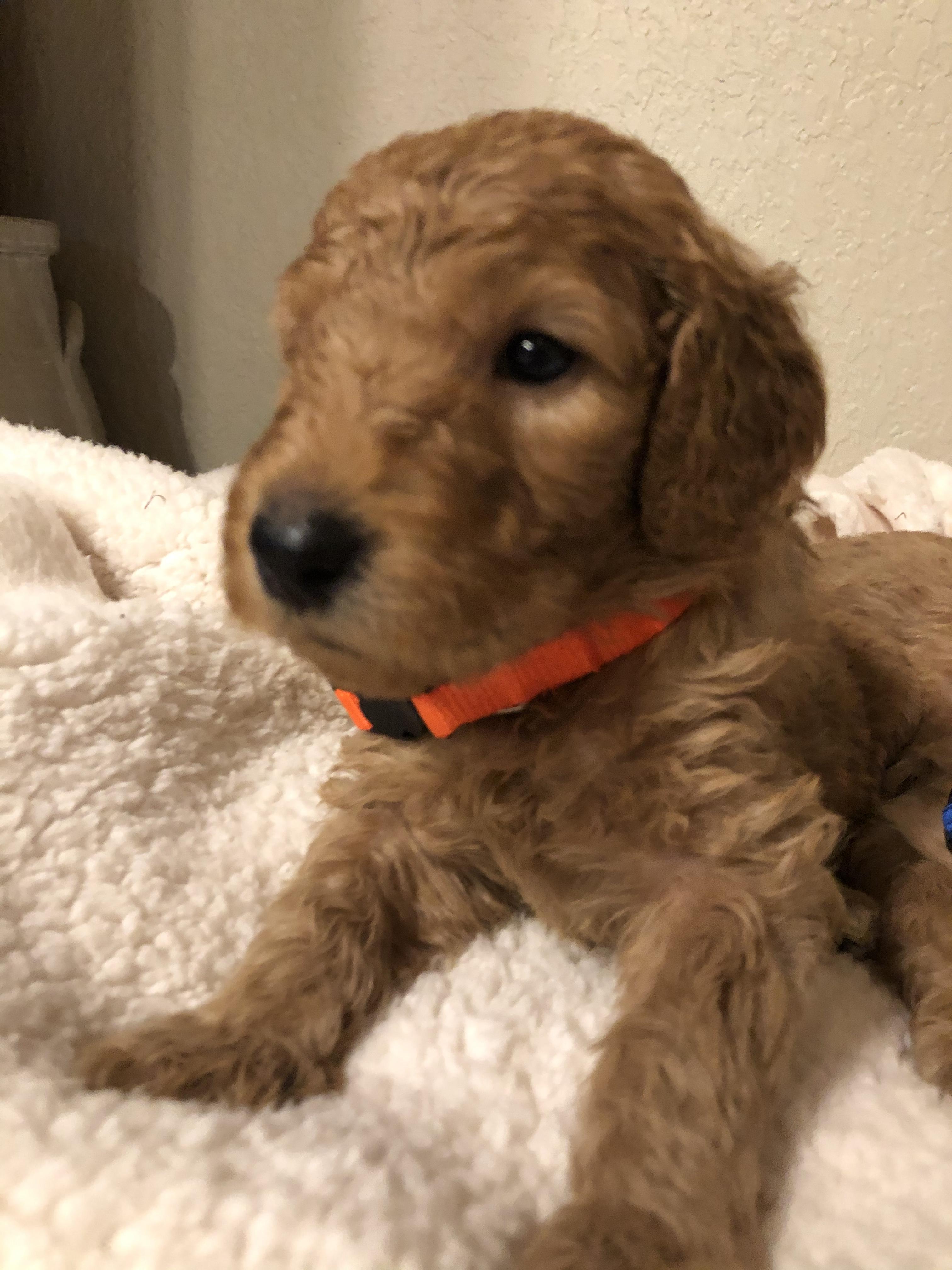 Goldendoodle puppies include cream, apricot, red, chocolate, black, merle, and parti. Colors will vary depending on the parent dogs.