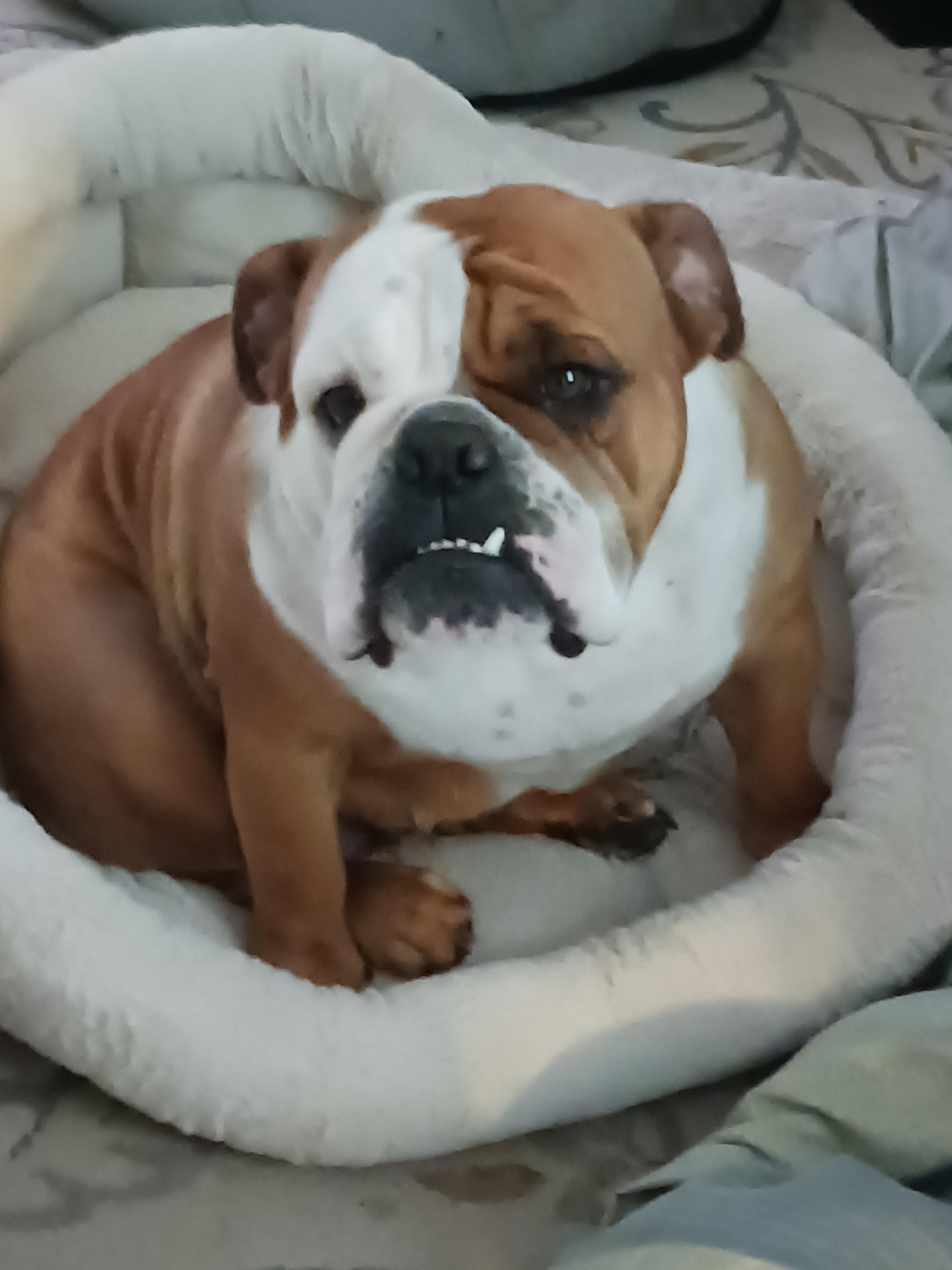 Oden is a male Bulldog. Carefully selected as a great representative of his breed, Shyanne decided to make him part of their program. Shyanne has passed Good Dog’s screening process, which involved a review of their breeding practices, environment, and the mental and physical health of their dogs.