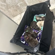 All our adults are in our home and part of our family. Every litter of puppies has my full attention and whelped in my bedroom. They spend there first two weeks in there before we move them out into our living room so they can be well socialized with the rest of our family. We work on crate training and potty pad training as well.
