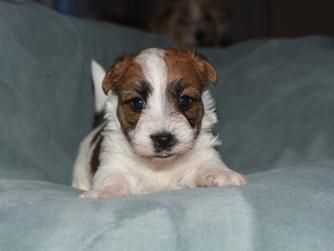 Candace was wonderful to work with in bringing home our new best friend, Angus Young, aka “Gus”. It is clear how knowledgeable and passionate Candace is about the Russell Terrier breed, and we could not be happier with our decision to work with DBF. After we took him home, she reached out to us to make sure he was settling in alright, too, which just goes to show how much she loves her puppies. Our little guy is sweet, smart, bouncy, curious, affectionate, and is such a happy dog. He is great with our other dog, a 60lb lab mix, and he loves meeting new people and other pups. It is so nice to have a companion that is just excited to explore the world with you and at the end of the day is just as happy to snuggle up on the couch. Thank you, DBF for bringing us our lion-hearted little guy!