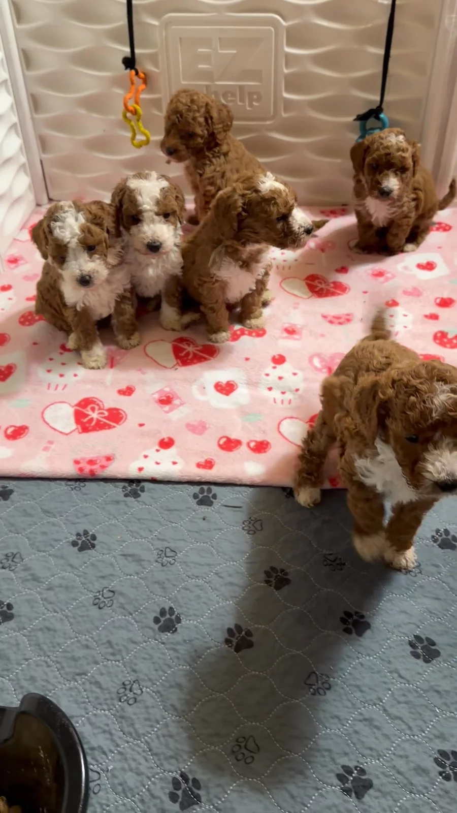 "Your new puppy will come partially potty trained, comfortably eating dry kibble, and up to date with its first round of vaccinations. They have also received early socialization to help ensure a confident and well-adjusted transition into their new home. 🐾. Deposits are non refundable."