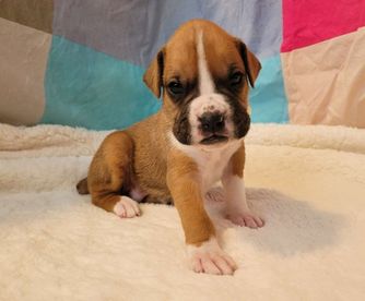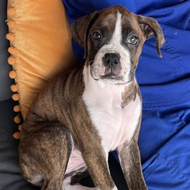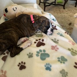 We are very happy with the communication and the cute photos from Maria prior to picking up our new puppy Tilly. She is now in her 12th week and very sweet but very active and still learning. Like most females. She is very stubborn.LOL. I have recommended her site to another boxer owner who is looking for a puppy. Tilly got a clean bill of health at her recent vet appointment.