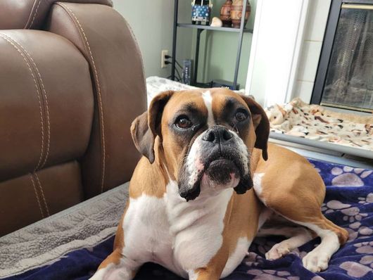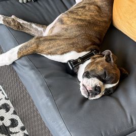 Dixie is a female Boxer. Carefully selected as a great representative of her breed, Maria decided to make her part of their program. Maria has passed Good Dog’s screening process, which involved a review of their breeding practices, environment, and the mental and physical health of their dogs.