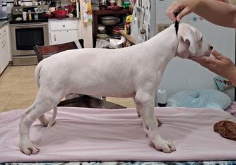 Congratulations on the purchase of your new Dogo Argentino. We have done everything we can to ensure that your new puppy is off to the best possible start from birth. The puppy will be wormed and checked for parasites. We will give the puppy it's 1st round of shots, we check each puppies hearing and check the puppies’ hips. Will give each puppy a lot of love.
