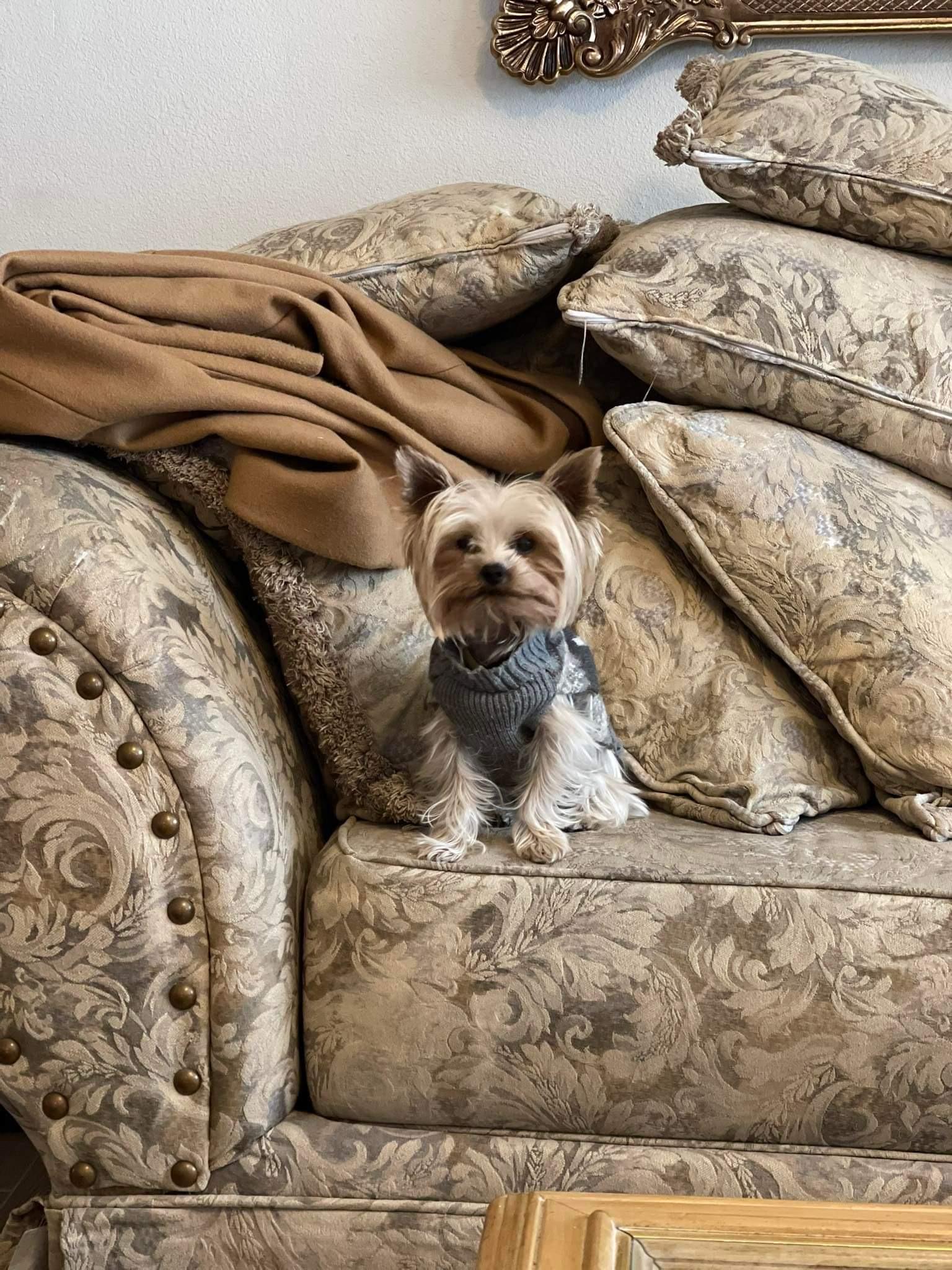 Sadie is a female Yorkshire Terrier. Carefully selected as a great representative of her breed, Armando decided to make her part of their program. Armando has passed Good Dog’s screening process, which involved a review of their breeding practices, environment, and the mental and physical health of their dogs.