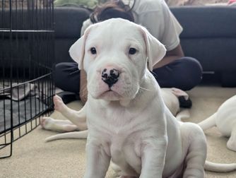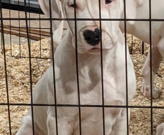 “All pups come UKC or AKC registered. Puppies will be fully vaccinated until the time of departure. All pups will be dewormed, microchipped and baer tested. Pups will be crate trained and are constantly being socialized and desensitized so we can provide a confident pup to your home. Deposits are taken so i know for sure that you are serious about getting your Quality Dogo pup!”