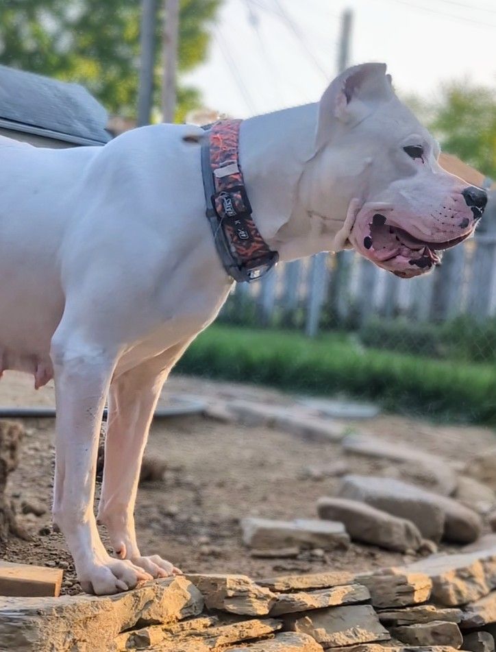 Orion is a very well balanced Dogo both physically and mentally. Lineage consist of show champions and hunting dogos. He is a Very loyal, and Protective Dogo. Has produced beautiful pups with strong prey drive and sound temperaments.