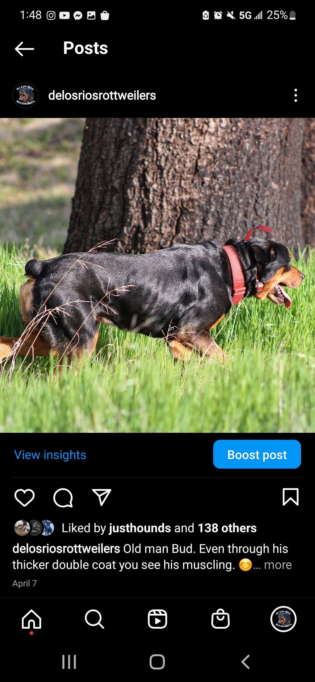 Moonshine is a female Rottweiler. Carefully selected as a great representative of her breed, Leihla decided to make her part of their program. Leihla has passed Good Dog’s screening process, which involved a review of their breeding practices, environment, and the mental and physical health of their dogs.