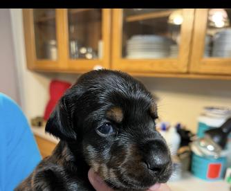 Our puppies include black and rust and red and rust. Colors will vary depending on the parent dogs.