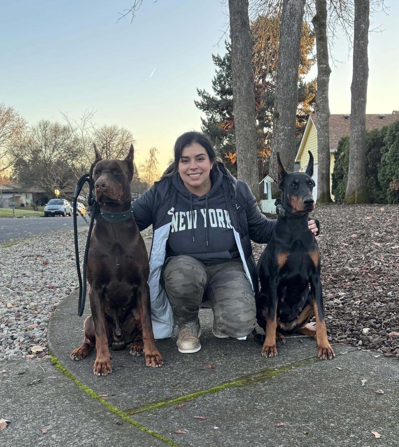 I'm Natalie A., the breeder behind De Mata Dobermann Kennel located in Newberg, OR. We produce European Dobermans from direct European Imported Females. Our females are carefully selected with longevity, genetics, and overall soundess in mind. Our breedings typically take place over seas with well renowned champion males, but ultimately with only the best lines.