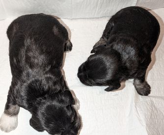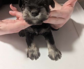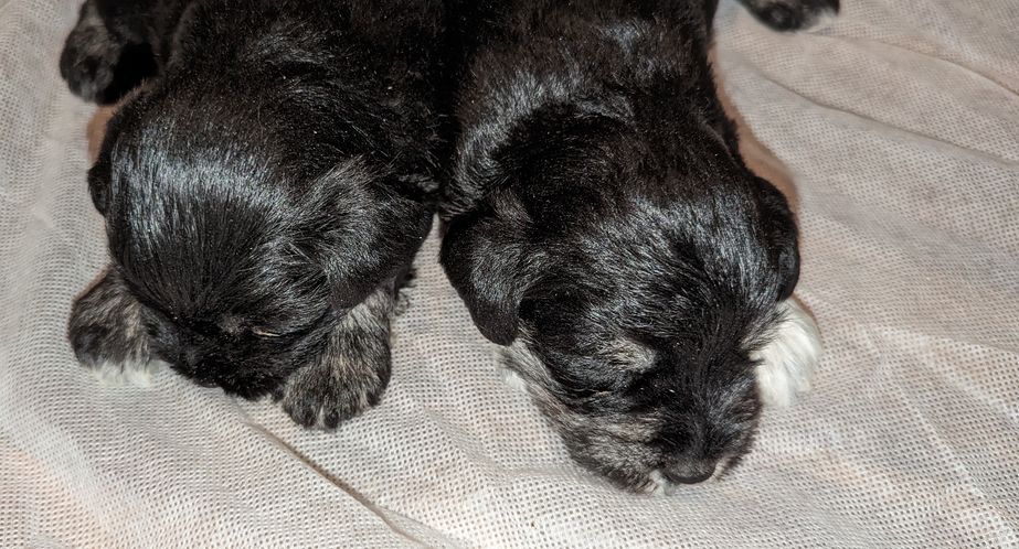 Our puppies are black and silver. Colors will vary depending on the parent dogs.