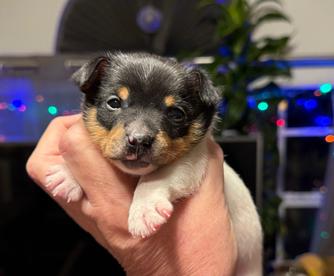Our puppies include white and tan and white black and tan. Colors will vary depending on the parent dogs.