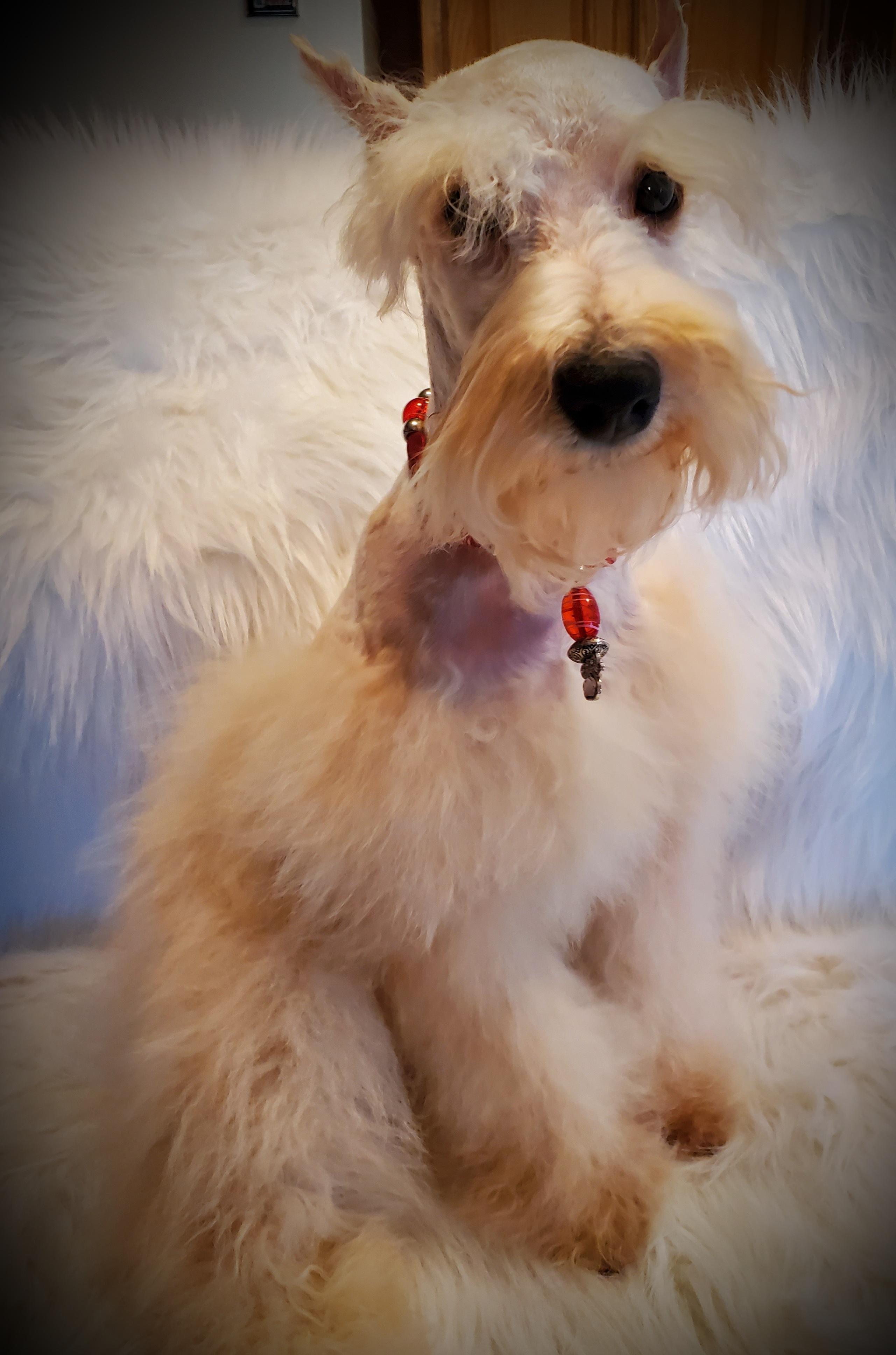 Cotton is a female Miniature Schnauzer. Carefully selected as a great representative of her breed, Debra decided to make her part of their program. Debra has passed Good Dog’s screening process, which involved a review of their breeding practices, environment, and the mental and physical health of their dogs.