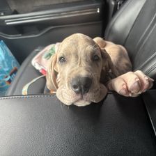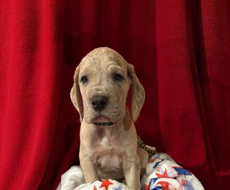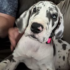 Tamara was amazing to work with! She was friendly and available for me to ask all kinds of questions. We FaceTimed, text before and after adoption. Anytime I have questions she is always just a text away being supportive of me and her puppies! And let me tell you 10/10 recommend. I’ve had Lukan for over a week, and he has the best temperament. You can tell that he’s been worked with since birth. He is not scared of anything, lawn mower, vacuum, hair dryer, car wash, you name it he just sees what it is and almost shrugs his shoulders cause he’s not bothered by it. She starts potty training and crate training and we’ve continued that and so far he’s doing amazing with it…. He is just a happy go lucky curious puppy. He’s been exposed to children and it shows when friends came to visit he loved the kids but when they got wild, he just went and came and sit by me. Temperament and intelligence is so prominent in her litters. Not to mention beautiful markings… 10/10 a wonderful experience and if I ever want to add to my dog family, I will be seeking her out again, and I will be recommending her to any of my friends who are ready to add a Dane to their pack!!