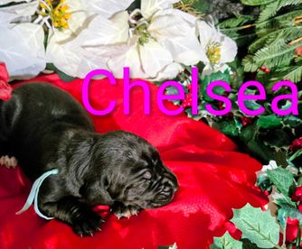 “Our babies come vaccinated to age, they are AKC on a limited registration and microchipped. They come with a binder including all their information as well as training guides. We provide a small bag of food to send home if you choose to switch food to help prevent tummy upset. Our puppies range in price by color. The price will include a prepaid Microchip and AKC paperwork to register.”