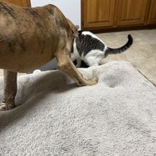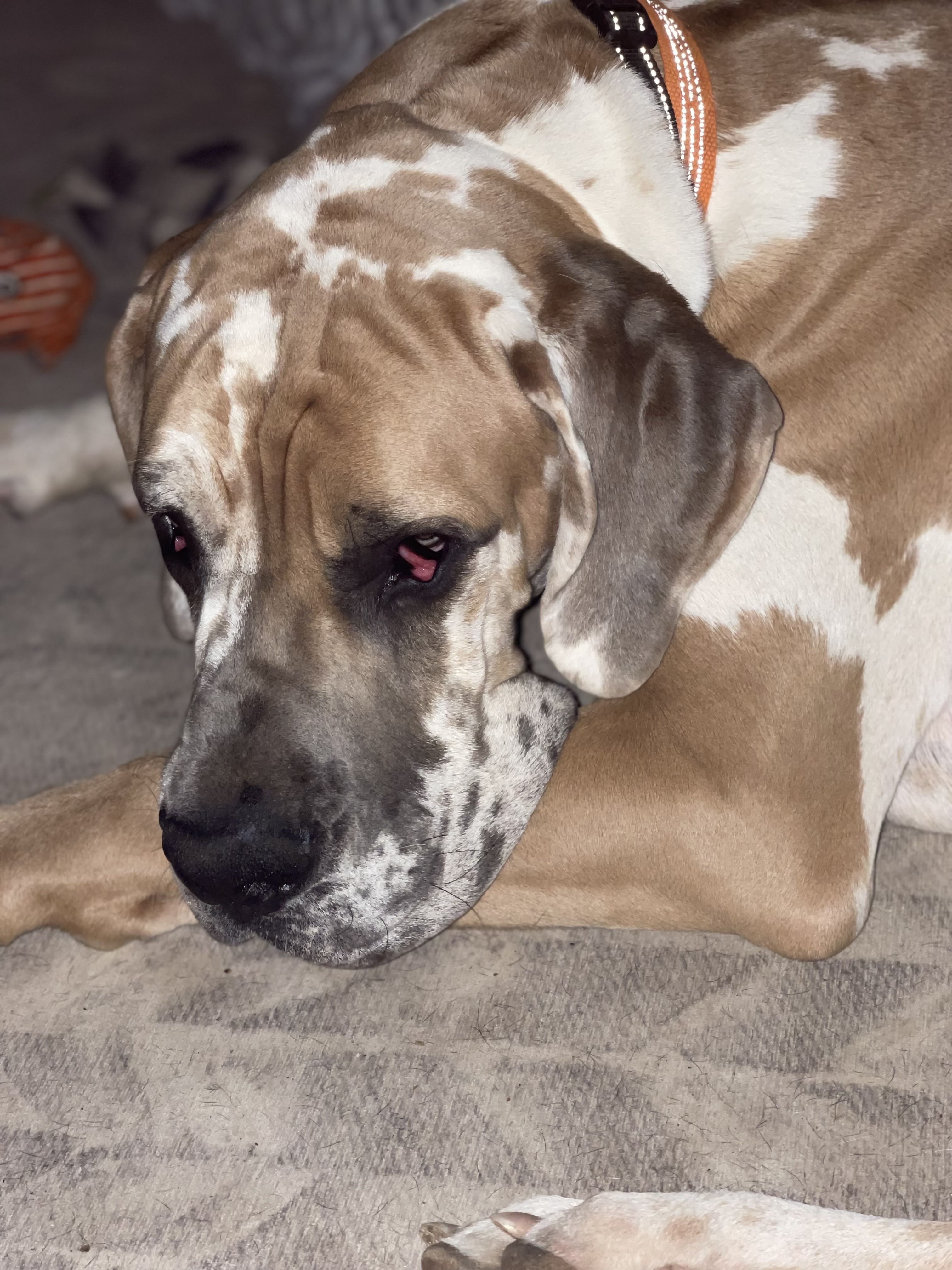 Our sweet Harlequin Dottie came for a visit while her family went on vacation. She is loving the extra time with her siblings.