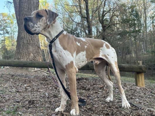 I'm Tamara D., the breeder behind DeBruce Danes located in Gainesville, GA. It has always been a dream of ours to add Great Danes to our family and, in turn, share them with the world. We were finally able to achieve our dream a few years ago when we added our first Great Dane, Madam Bella, to our family. We pride ourselves on raising our Danes in a clean, loving environment, with plenty of room inside and outside to roam, play, and run.
