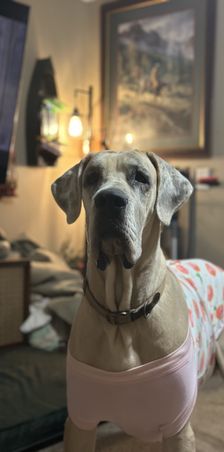 Dixie is our BIG girl here at DeBruce Danes. She was breed by Hidden Acres Danes out of Indiana. She is the true definition of a gentle giant. She loves her people, pillows and anyone she meets.