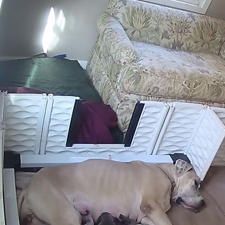 Good morning from our Super 7! They are officially 1 day old and thriving! Momma Cleo will not leave their side so Nana is catering to her with food and water as well as extra love and attention!