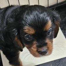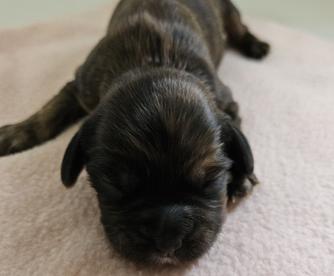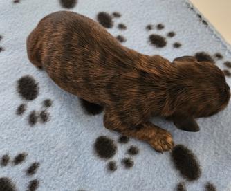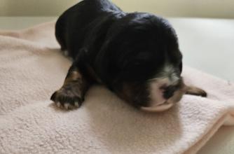 One baby boy left from the Verschi/Gus litter. A beautiful Black and Tan!!! Almost 9 wks old, ready for his forever home now! Up to date on puppy shots, dewormed and vet checked! Will come with health record, food and toys! This boy is 3/4 Cavalier and 1/4 poodle. Mom is a 17lb full Cavalier, Dad is a 16 red Cavapoo. Both patents are extremely lovable, great natured dogs. This boy will make someone a wonderful pet! Ready now! 618 384 7259