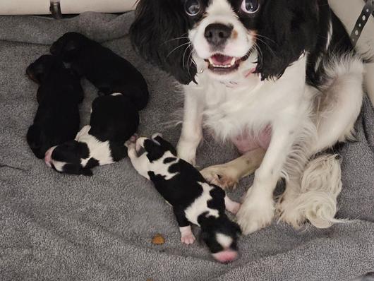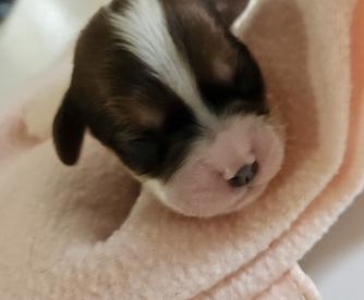 Verschi is a pure bred Tri color Cavalier. She is sweet and loving, and a wonderful mama!! She is ACA and APR registered.