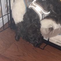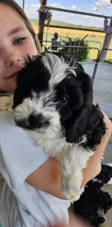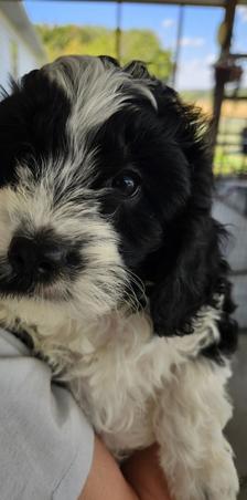 This girl needs a home!! Almost 10 wk old Cavadoodle. Will be Low to No shedding!! Beautiful mix of black and white throughout her coat! Shes using puppy potty pads. Mom is full Cavalier, Dad is a goldendoodle. Mom is 17lb, Dad is 20. Dad put a nice curly coat on her. Both are extremely good natured, sweet, friendly dogs! Send me a msg or call 618 384 7259