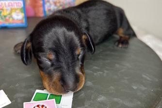 Decadent Doxies of KY reports to performing the health tests below on their breeding dogs. Ask your breeder about the tests performed on the parents of your litter. Learn more about health testing for Dachshunds.