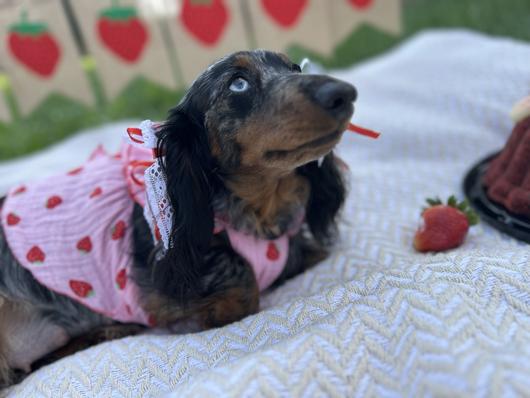 Mirabelle is a female Dachshund. Carefully selected as a great representative of her breed, Lillian decided to make her part of their program. Lillian has passed Good Dog’s screening process, which involved a review of their breeding practices, environment, and the mental and physical health of their dogs.