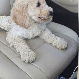 Rosie is a female Labradoodle. Carefully selected as a great representative of her breed, James decided to make her part of their program. James has passed Good Dog’s screening process, which involved a review of their breeding practices, environment, and the mental and physical health of their dogs.