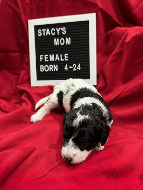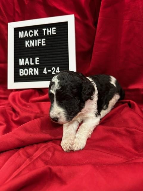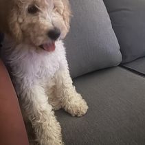 Frankie is a full Standard Poodle that is mostly brown with white patches and has parti poodle genetics. He's loves his people and his puppies.